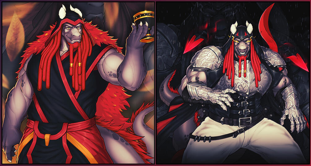 A former general now a top agent for the most prolific empires of the criminal underworld known as the Prophecy. For 15 years, Knux served his former alliance as catalyst to their successful domination over every enemy regimes they have faced. When first discovered and recruited 20 years prior, he started off as a rising officer that commanded smaller portions of the army. It took ten years of rising up the ranks to become a general due to his is tenacious obligation to please his former king and the royal family, fast than most native leaders within the kingdom. Around the same time while serving his former sovereignty, Knux discovers and learns more about the criminal underworld within the galaxy, soon discovering about the conglomerate, The Prophecy, which is the centerfold of every major crime syndicate in the galaxy while also being the guild of the most talented and skilled set of bounty hunters known to man.While his former kingdom was decorated as one of the most feared forces within its neighborhood clusters of stars, Knux saw the Prophecy as a step up on the ladder, making him more than obsessed with its perks and benefits if he were to better himself to be one of the top members of the guild. The duke had sworn to protect and serve his king and his family at the time, but he saw better opportunities if he were to keep active with his own training. It wouldn't be too long after till the former general had made his decision on what he wanted to do further down the road.Five years into serving the kingdom, Knux had enacted his membership for the intergalactic guild which he too quickly elevated himself in the ranks by picking some of the more difficult bounties to complete. Within a time span of another five years, Knux them saw himself within the peerage ranks of the guild, which is one of the top 1,000 hunters out of 500K. Realizing how closer he is becoming of reaching his goals, Knux was forced to come up with an unfortunate decision regarding his loyalty with his kingdom; this was during the time when he had also been promoted to general of his armada. Being a top member of the guild meant the majority of your time and resources had to be spent working with the conglomerate, which leaves little to no room with collaborating on other career paths.Knux had informed his former King of his wishes and future goals, but would not depart without making sure that every opposition the kingdom had every faced or grew concerned with had been permanently glassed and removed from existence. Thus, permission was granted by the former king, which lead to General Knux leading an onslaught on many regimes within the next several years with him as the commander of the army. Only two words can describe the massive campaigns that were driven and led by Knux's command: Total Annihilation. Many regions, global territories, dominions, colonies, were either wiped from the face of each world or maned to the point where it'll never recover as a functioning society -- all due to the general's wish of becoming something that interest's him more.Once his agenda was completed and the kingdom he served no longer had enemies to grift their land, Knux was free to depart and commit to his new future endeavors. During the time of the departure, Knux had risen to becoming one of the top 100 hunters of the guild, making him a Marquess rank, the final rank before becoming the one rank he craved for many years prior. By the time he reached the age of 40, he had finally completed his 20 year long journey of becoming a Duke, which makes the naga one of the top 25 hunters within the entire conglomerate and galaxy. This major promotion turns Knux into an agent of the guild, no longer picking out bounties from a table, but given missions from the High Council to conduct whenever it is time for any Duke to serve. Because these missions are so grand in difficulty, they do not often come in high numbers, allowing each Duke to mostly rest and keep healthy until summoned to complete a task. This allows Knux to regain his desired to sort his life however he sees fit, as long as whatever it is he does, he'll make time to complete an insurmountable campaign given by the High Council.